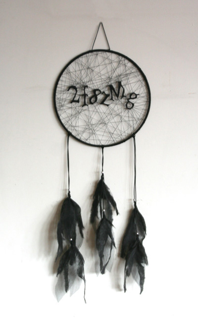 It looks like a wall decoration with feathers hanging from the bottom. I can’t figure out the code in the round part of the decoration. Almost looks like a captcha code.